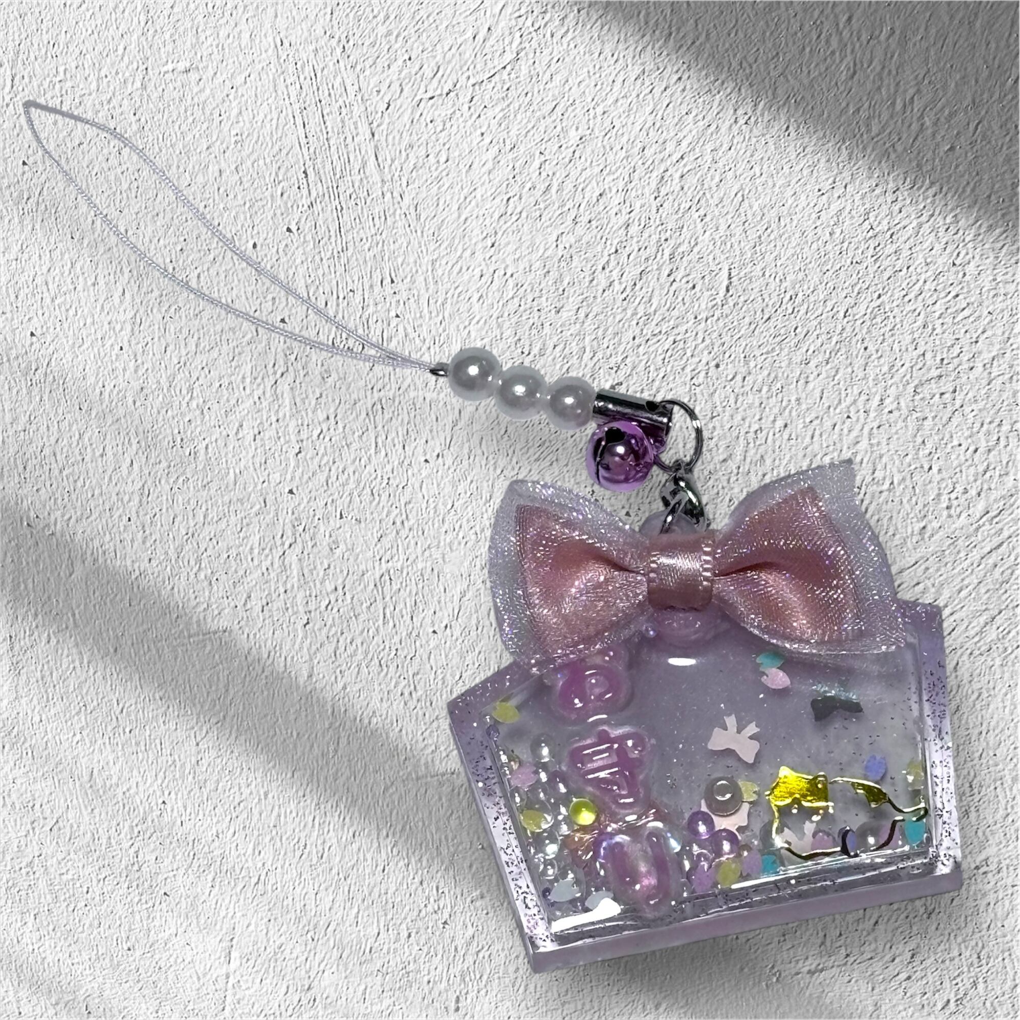 手作りならではの温かみのあるレジン素材で作られており、一つ一つに愛情が込められています。持ち運びやすいストラップタイプなので、バッグやお財布などに付けて、いつでも一緒に楽しめます。自分用にはもちろん、大切な方への幸福を願うギフトとしても最適です!